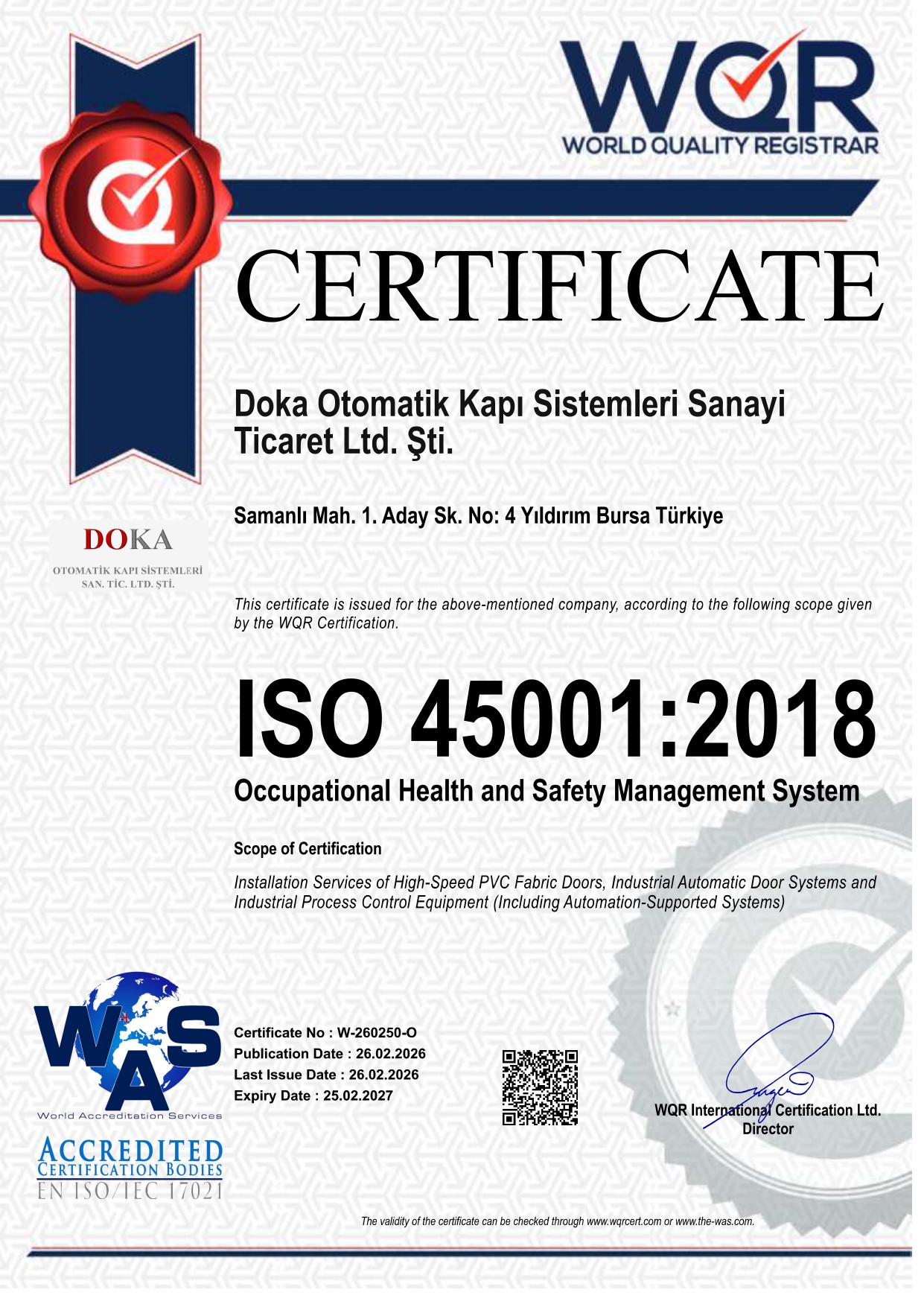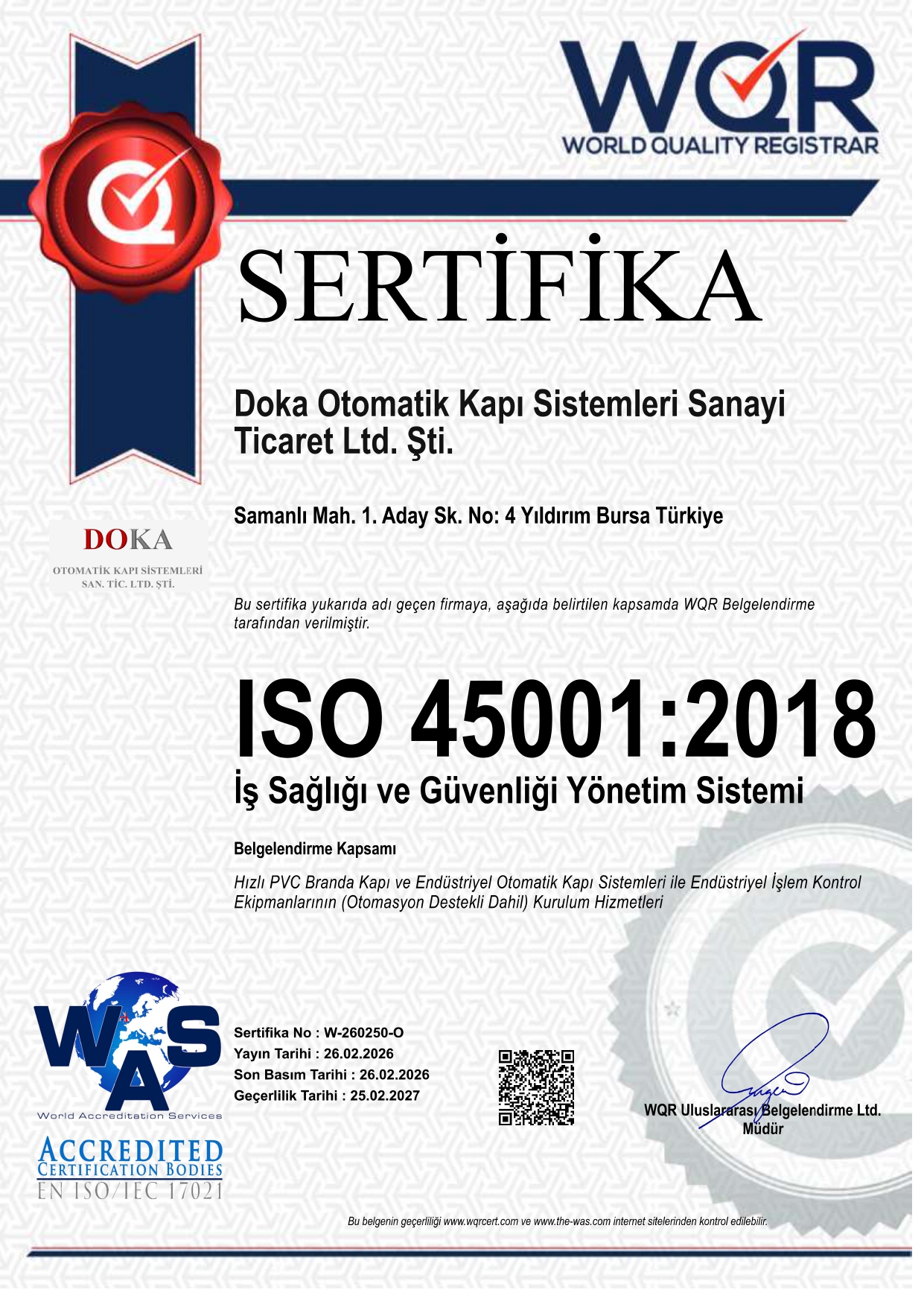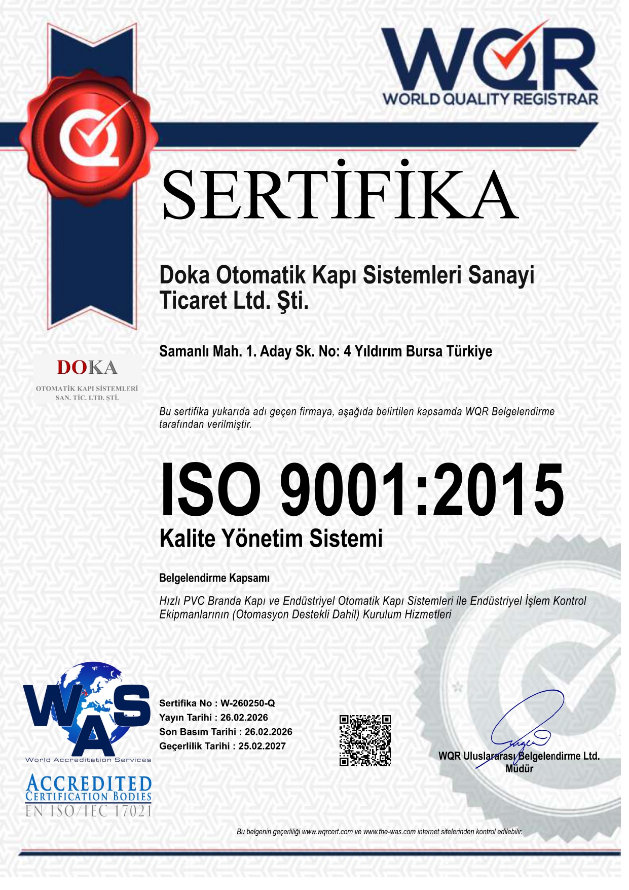 DOKA olarak, sadece kapı üretmekle kalmıyor; montajdan periyodik bakıma, teknik destekten özel üretim taleplerine kadar uçtan uca hizmet sağlıyoruz. Alanında uzman ekibimizle hızlı, kaliteli ve kalıcı çözümler sunarak projelerinizi güvenle tamamlıyoruz.
